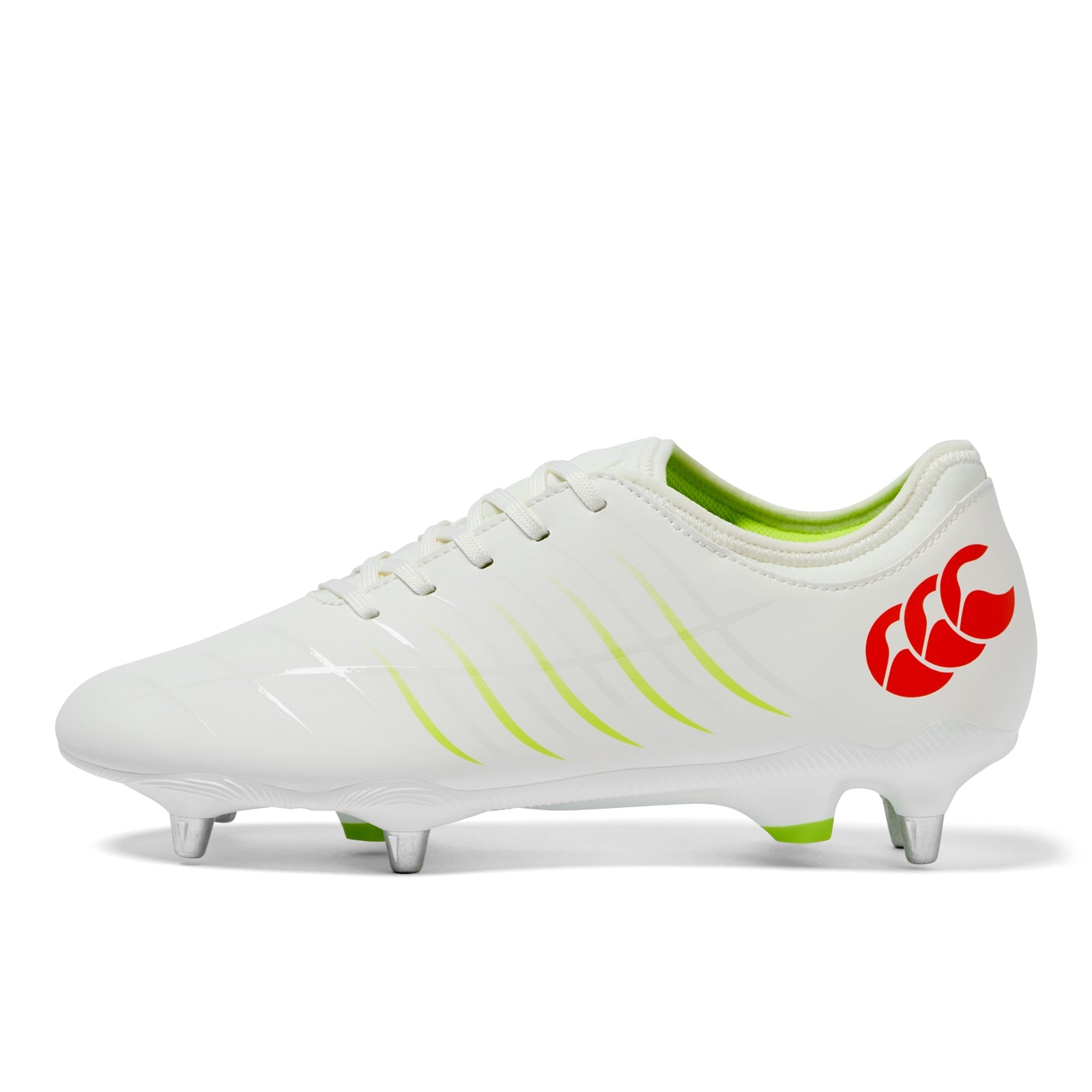 Rugby approved six metal studs combine with rhombus shaped moulded studs for unrivalled traction.
