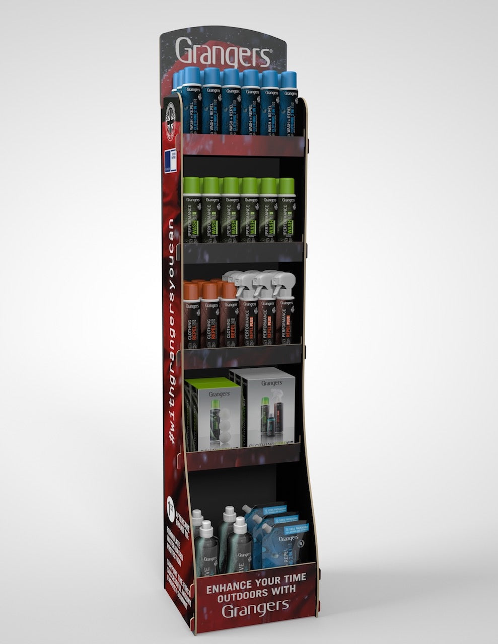 The Grangers FSDU is a floor-standing display unit designed to effectively showcase Grangers products in retail environments.