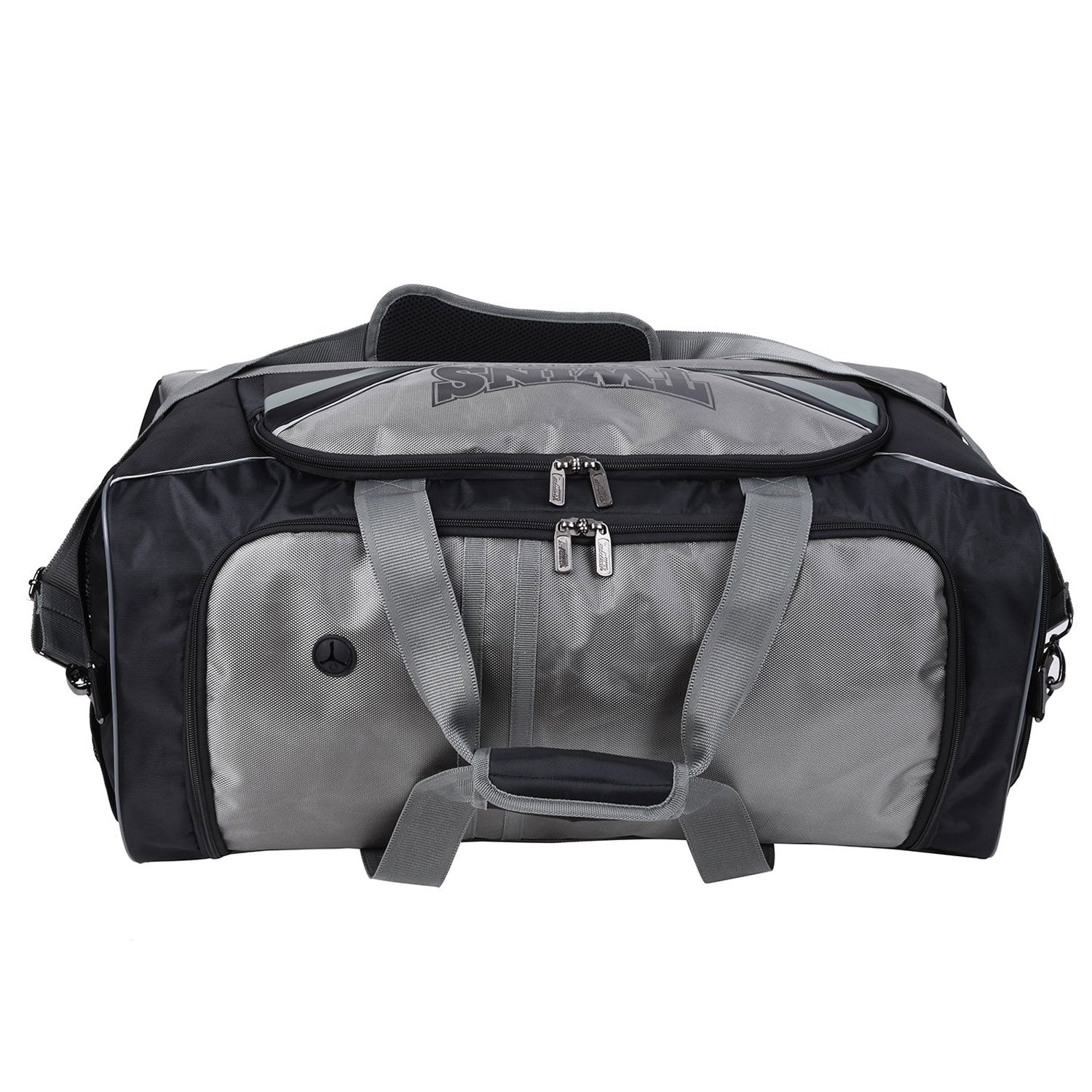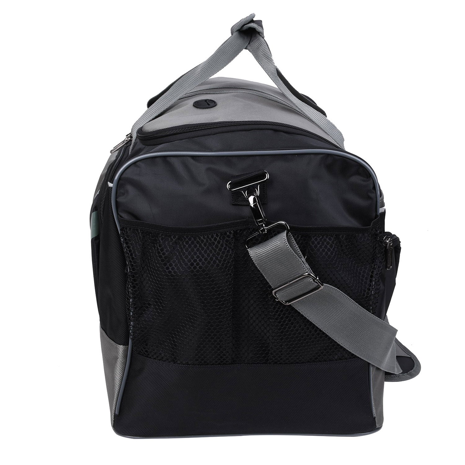 Extra large centre compartment with shoe or boxing glove compartment at one end. 2 mesh pockets at the other for a water bottle or other belongings.
