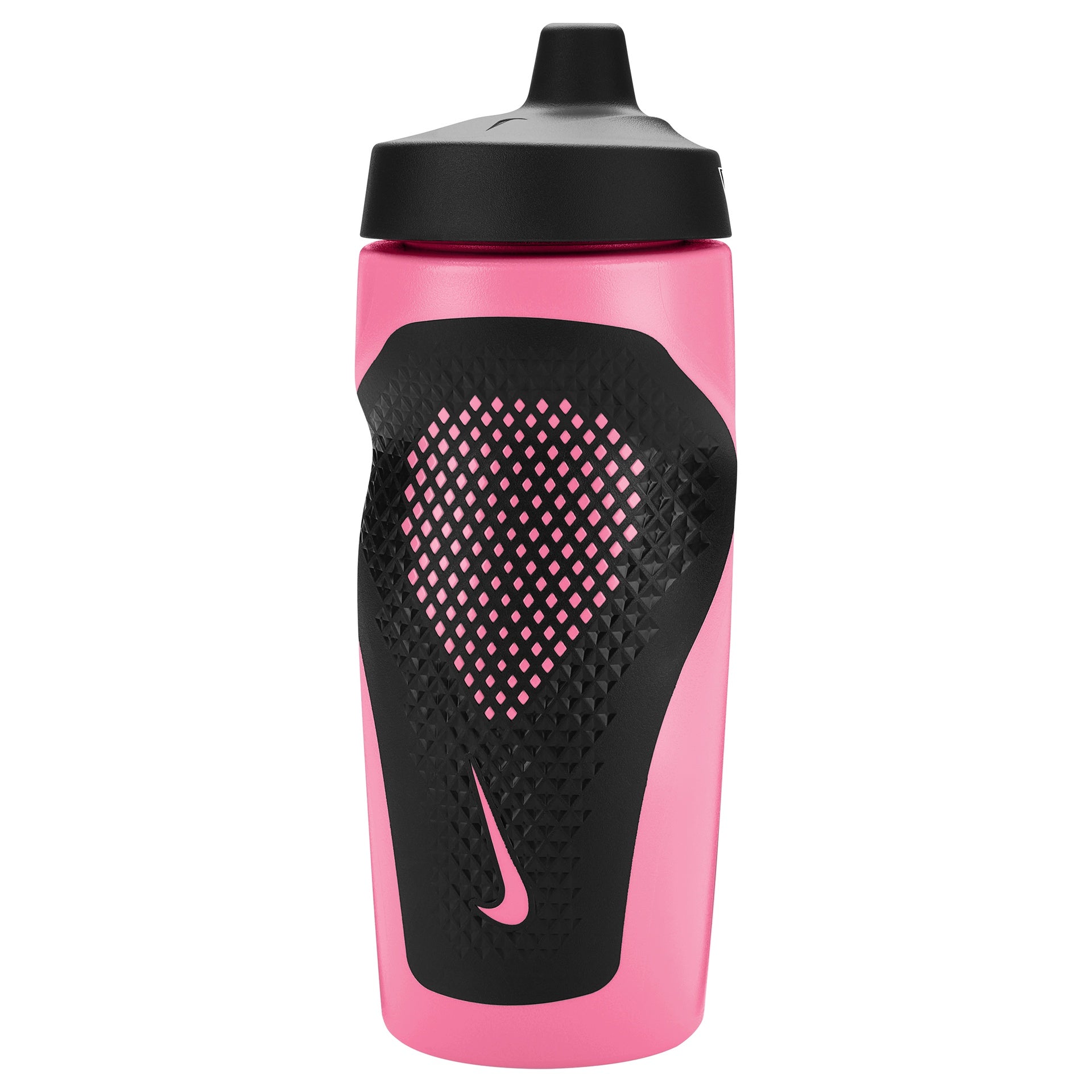 The Nike Refuel Bottle Grip, designed for runners, offers functionality and comfort in one lightweight package. With a capacity of 18 oz/530 ml, this bottle is easy to hold and squeeze for quick hydration. Its ergonomic design ensures a solid grip, while non-slip studs add extra security. The bottle's wide opening facilitates quick filling and easy cleaning, and it's dishwasher safe. This unisex bottle, available in black/black/white, is free from BPA and PVC.
