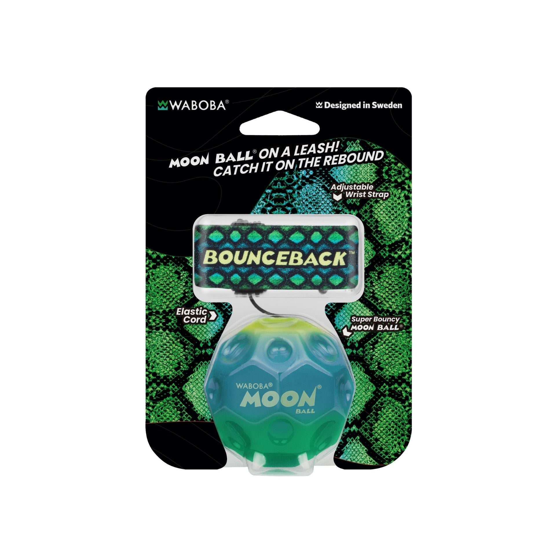 Take your Gradient Moon Ball for a walk and Bounceback whenever you need a break. Strap in and experience the Moon Ball in a whole new way. Bounceback features a Moon Ball on a leash you wear with an adjustable wristband. It's addictive to bounce everywhere! Simply throw it in front of you so it bounces and catch it on the rebound!
